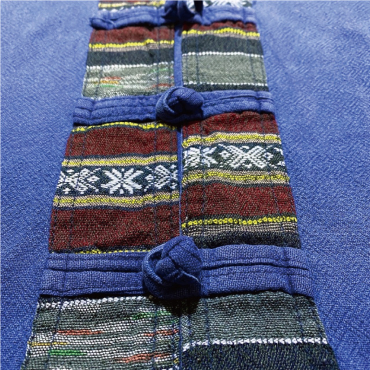 チャイナシャツのポケットは上から手を入れるパッチポケットが多く見られますが、当商品はサイドポケットとなっており、見た目にもミニマムでスマートな佇まい!
