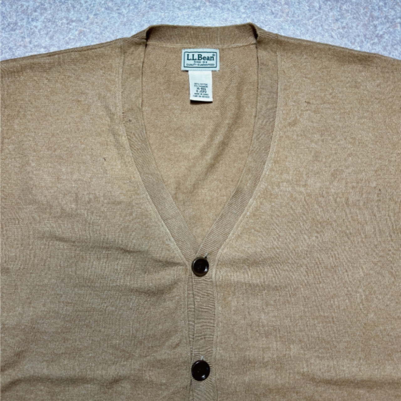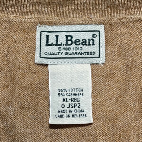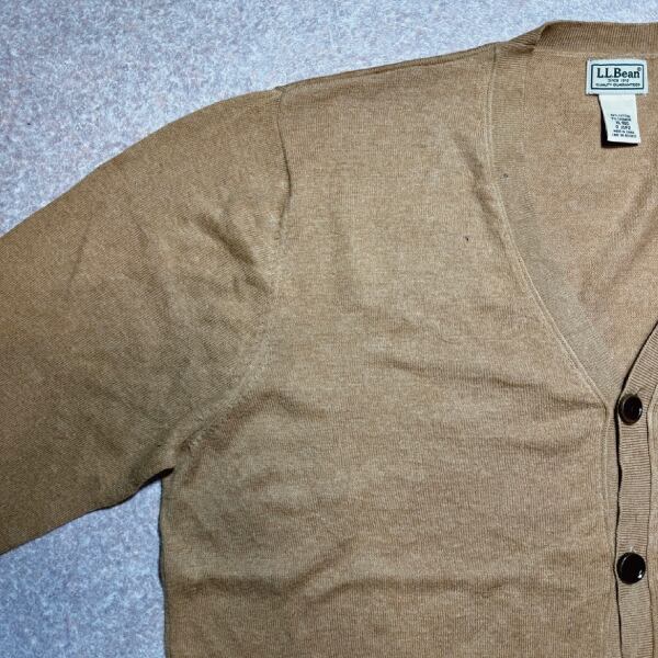 「L.L.Bean(エルエルビーン)」90s 00s XL-REGサイズ コットン カシミヤ混紡 ハイゲージ ニット カーディガン [2411012]