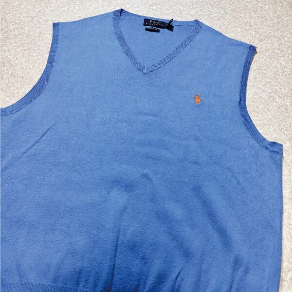 「POLO RALPH LAUREN(ポロラルフローレン)」10s 20s XL/TGサイズ ピマコットン ブルー ポニー刺繍 ニット ベスト [2516023]