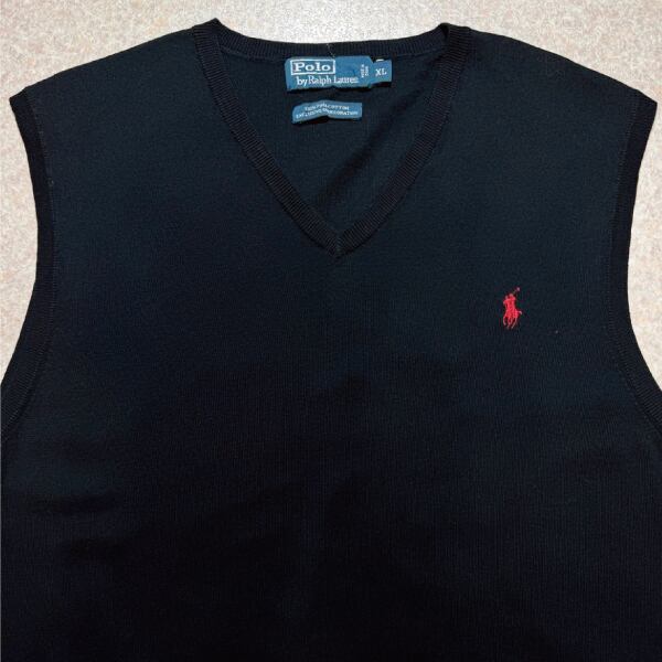 「Polo by Ralph Lauren (ポロラルフローレン)」90s 00s 10s XLサイズ ピマコットン ブラック ポニー刺繍 ニット ベスト [2516029] | 古着屋IDENTITY