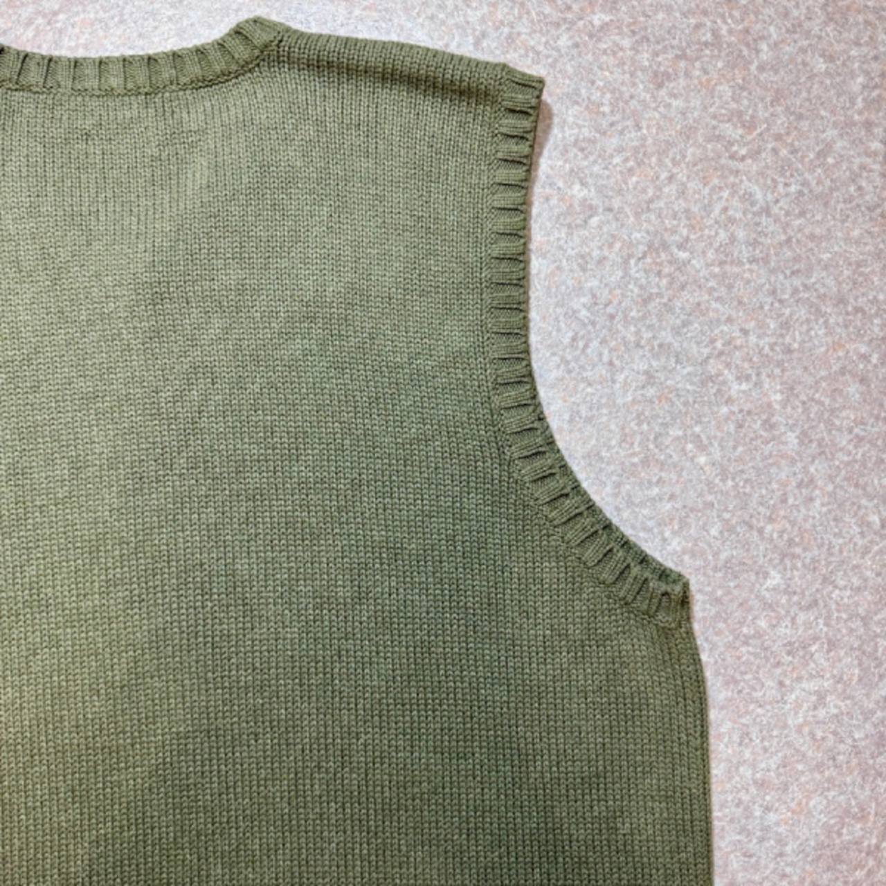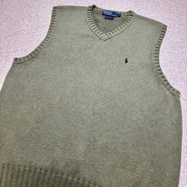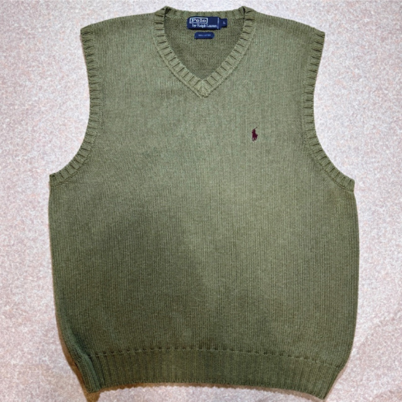 「Polo by Ralph Lauren (ポロラルフローレン)」90s 00s 10s Lサイズ コットン オリーブ ポニー刺繍 ローゲージ ニット ベスト [2516039] | 古着屋IDENTITY