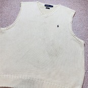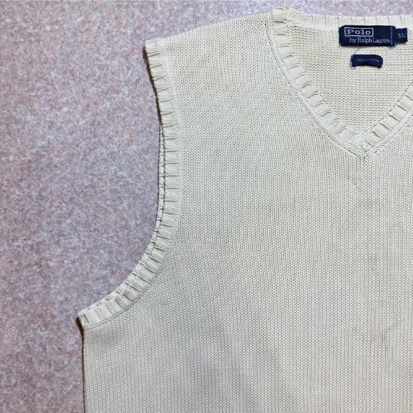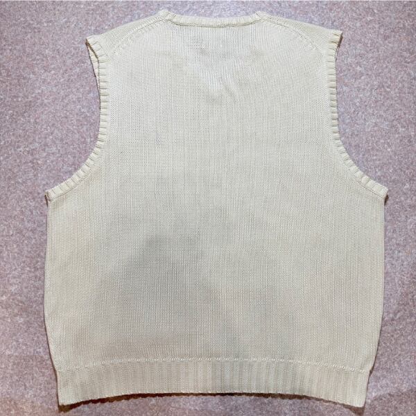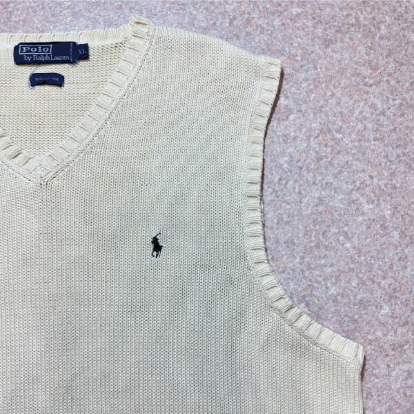 「Polo by Ralph Lauren (ポロラルフローレン)」90s 00s 10s XLサイズ コットン オフホワイト ポニー刺繍 ローゲージ ニット ベスト [2516042] | 古着屋IDENTITY