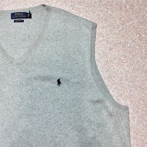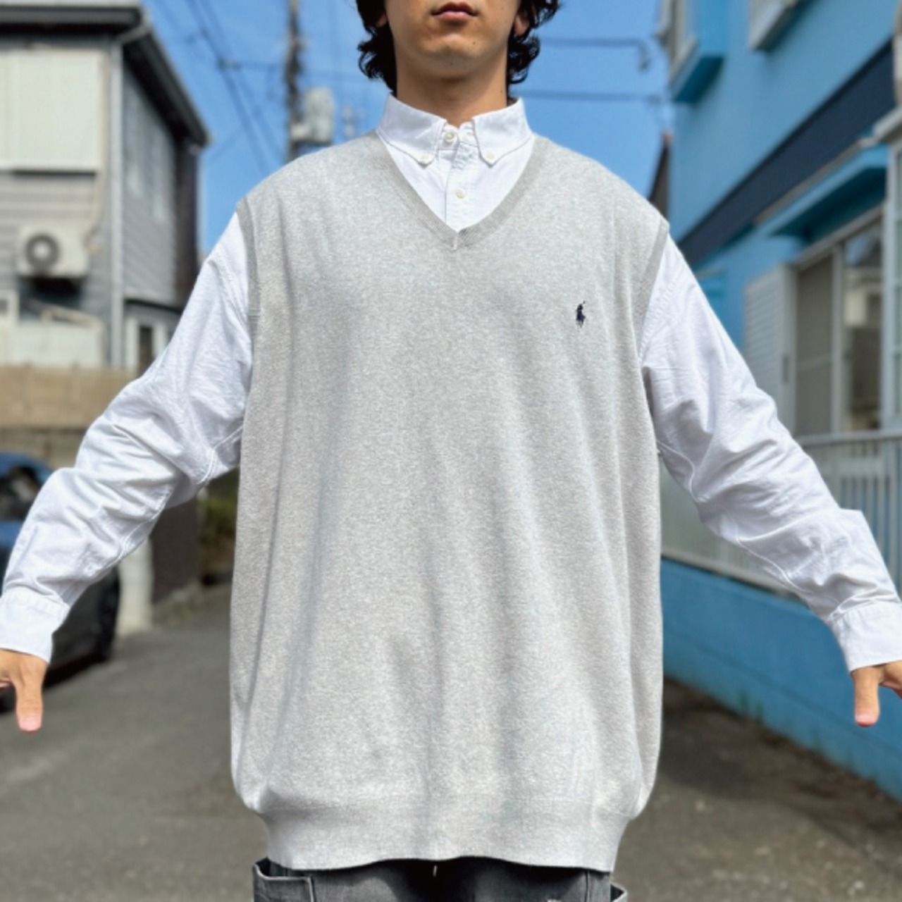 「POLO RALPH LAUREN(ポロラルフローレン)」10s 20s 3XLT/3TGLサイズ TALL/LONG ピマコットン ライトグレー ポニー刺繍 ニット ベスト [2516043] | 古着屋IDENTITY
