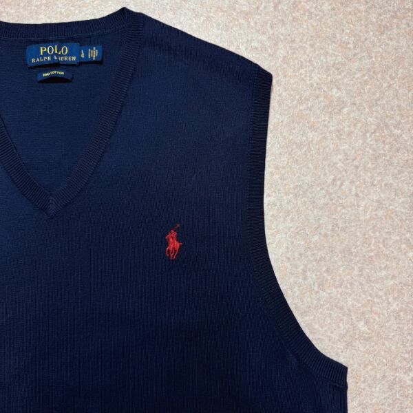「POLO RALPH LAUREN(ポロラルフローレン)」10s 20s LGサイズ ピマコットン ネイビー ポニー刺繍 ニット ベスト [2516048]