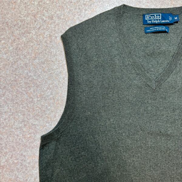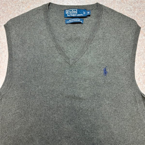 「Polo by Ralph Lauren (ポロラルフローレン)」90s 00s 10s Mサイズ ピマコットン チャコールグレー ポニー刺繍 ニット ベスト [2516049]