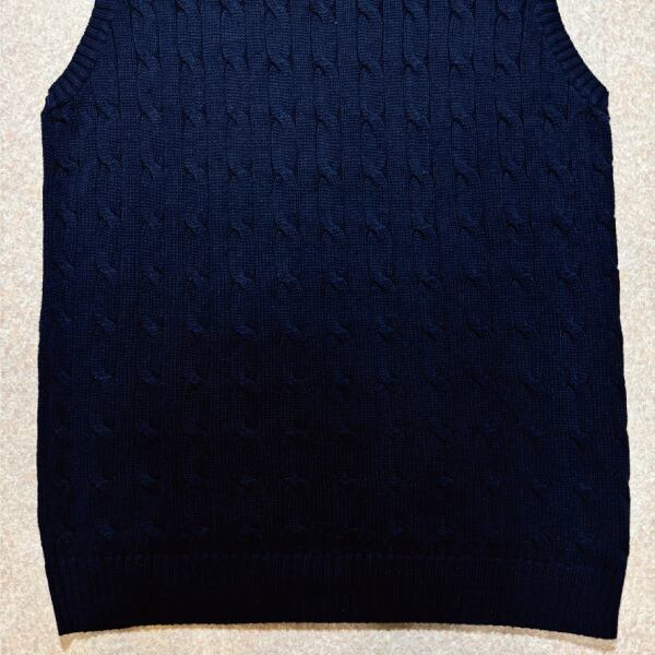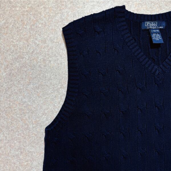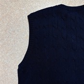 「Polo by Ralph Lauren (ポロラルフローレン)」90s 00s 10s ボーイズ L(16/18) Mサイズ相当 コットン ネイビー ケーブル編み ポニー刺繍 ニット ベスト [2516050] | 古着屋IDENTITY