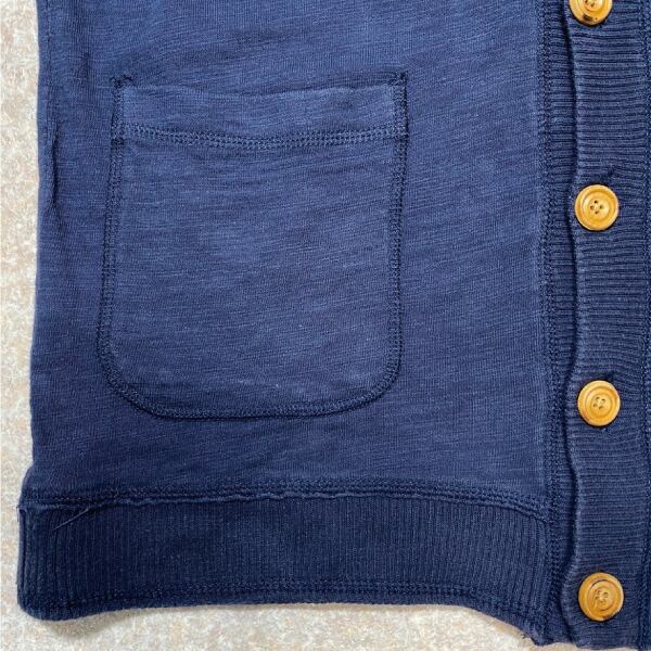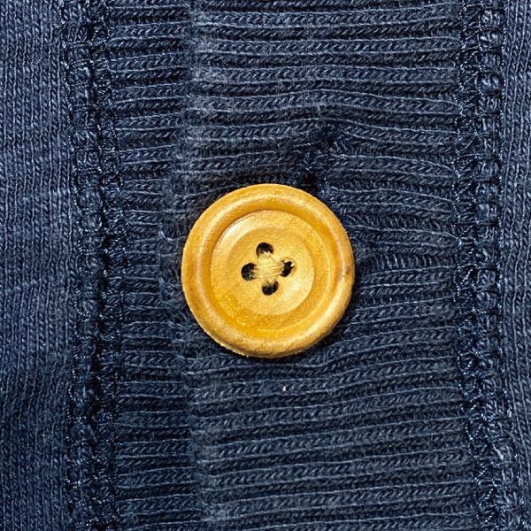 スポーティーなアイテムだと、ボディ同色の樹脂ボタンなどが使用されることが多いですが、カーディガンというアイテムだからか、優しげで温かみのあるウッドボタンが、古着らしい良さを醸し出します!