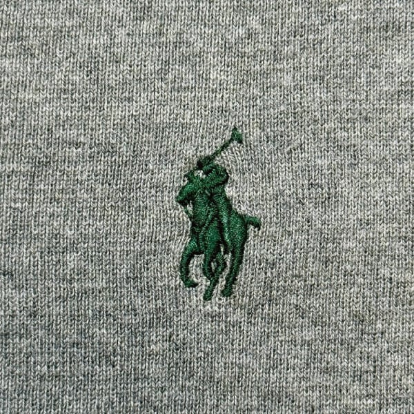 無彩色の渋めなライトグレーのボディに、上品に際立つダークグリーンのポニー刺繍がちょうどいいアクセントになっています!
