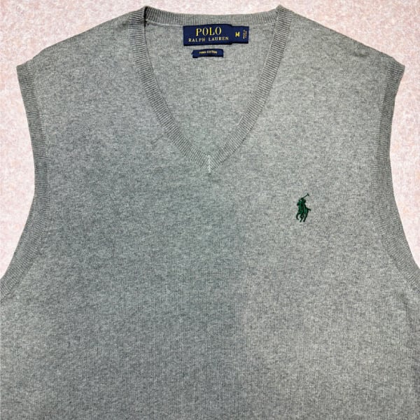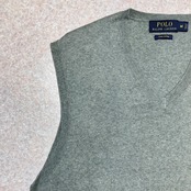 「POLO RALPH LAUREN(ポロラルフローレン)」10s 20s Mサイズ ピマコットン ライトグレー ポニー刺繍 ニット ベスト [2516057]