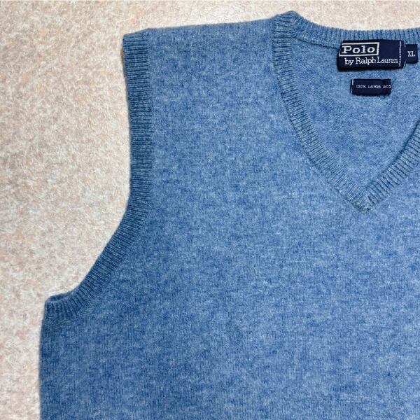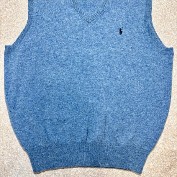「Polo by Ralph Lauren (ポロラルフローレン)」90s 00s 10s XLサイズ ラムズウール メランジブルー ポニー刺繍 ニット ベスト [2516059] | 古着屋IDENTITY