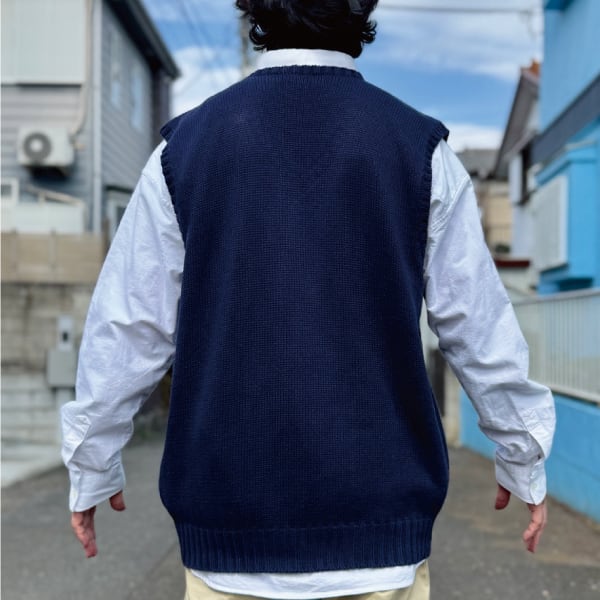 ニットベストに相性抜群な襟付きシャツはもちろん、カットソーやトレーナー、パーカーなどを合わせていただいても、様になる着こなしをお楽しみいただけます!