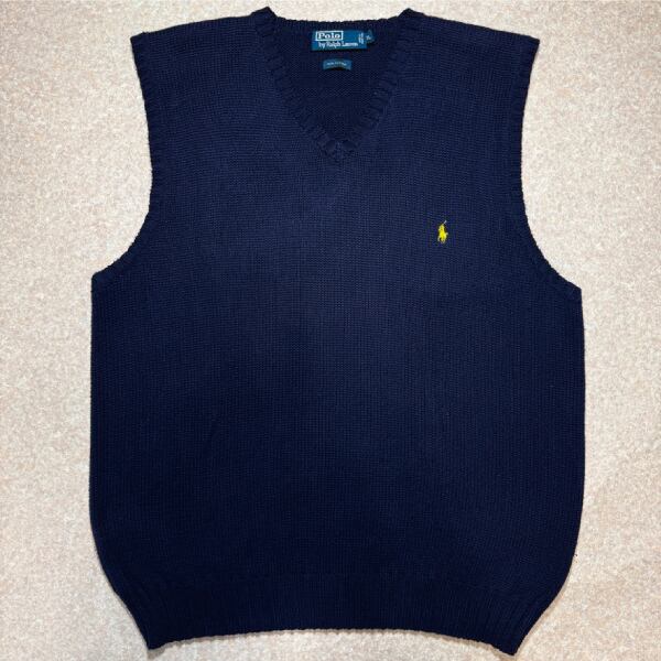 「Polo by Ralph Lauren (ポロラルフローレン)」90s 00s 10s XLサイズ コットン ネイビー ポニー刺繍 ローゲージ ニット ベスト [2516061] | 古着屋IDENTITY