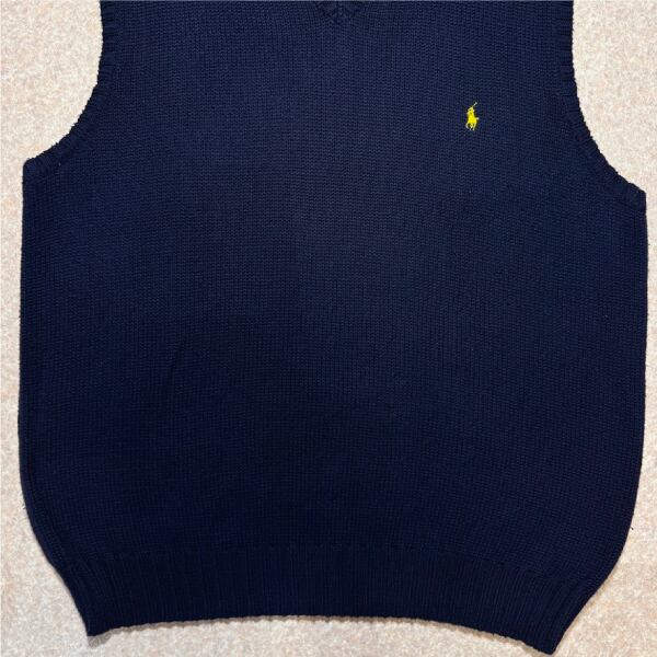 「Polo by Ralph Lauren (ポロラルフローレン)」90s 00s 10s XLサイズ コットン ネイビー ポニー刺繍 ローゲージ ニット ベスト [2516061]