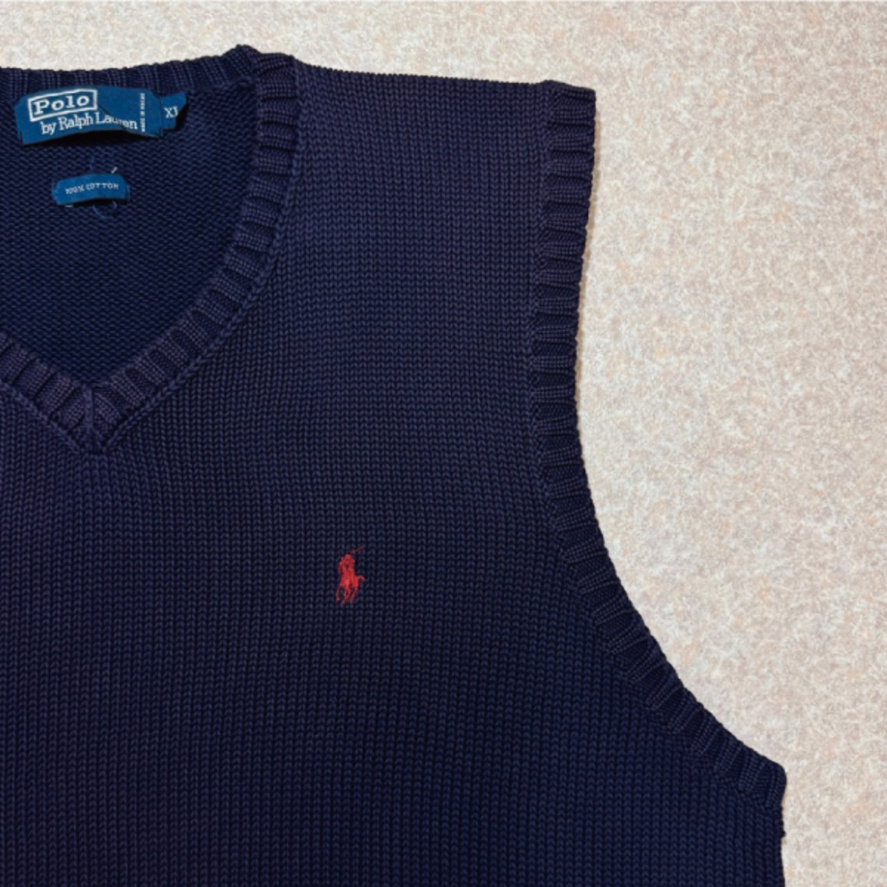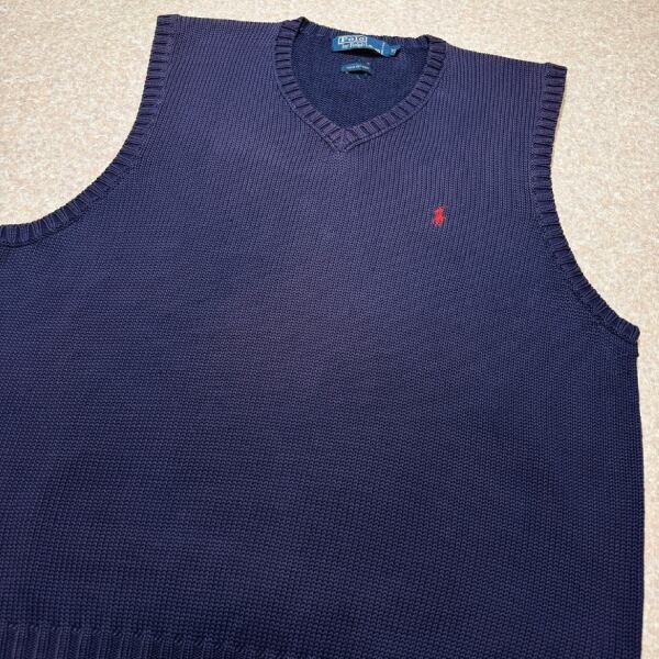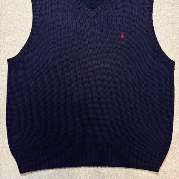 「Polo by Ralph Lauren (ポロラルフローレン)」90s 00s 10s XLサイズ コットン ネイビー ポニー刺繍 ローゲージ ニット ベスト [2516062]