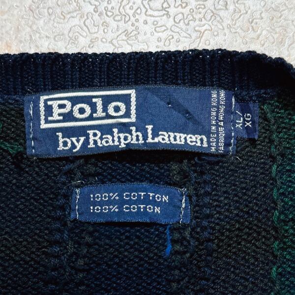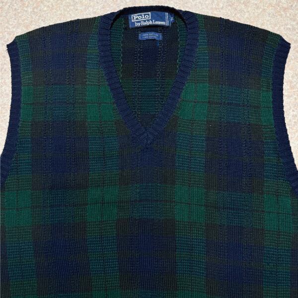 「Polo by Ralph Lauren (ポロラルフローレン)」90s 00s 10s XL/XGサイズ コットン ブラックウォッチ ローゲージ ニット ベスト [2516063]