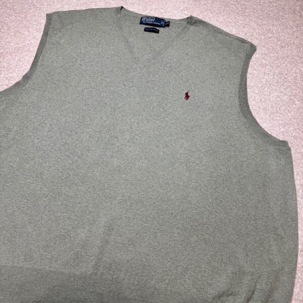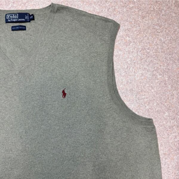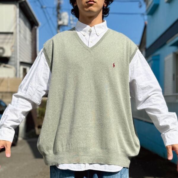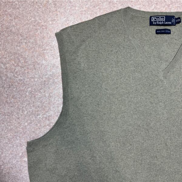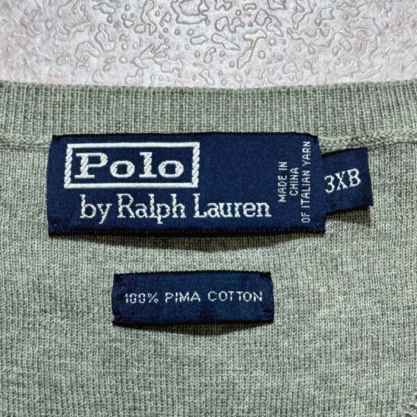 「Polo by Ralph Lauren (ポロラルフローレン)」90s 00s 10s 3XBサイズ ピマコットン オリーブ ポニー刺繍 ニット ベスト [2516065] | 古着屋IDENTITY