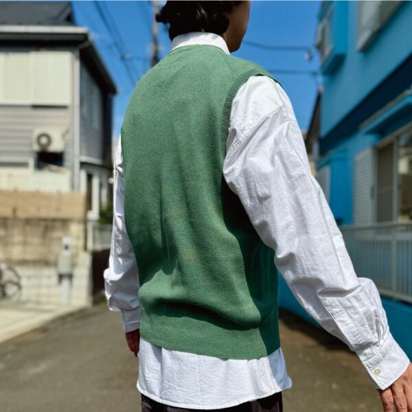 ニットベストに相性抜群な襟付きシャツはもちろん、カットソーを合わせていただいても、様になる着こなしをお楽しみいただけます!