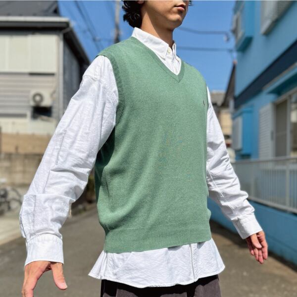 ラルフローレンのグリーンピマコットンニットベスト!