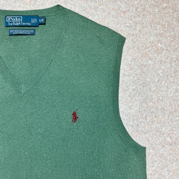 「Polo by Ralph Lauren (ポロラルフローレン)」90s 00s 10s L/Gサイズ ピマコットン グリーン ポニー刺繍 ニット ベスト [2516066]