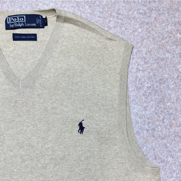 「Polo by Ralph Lauren (ポロラルフローレン)」90s 00s 10s Mサイズ ピマコットン ベージュ ポニー刺繍 ニット ベスト [2516068] | 古着屋IDENTITY