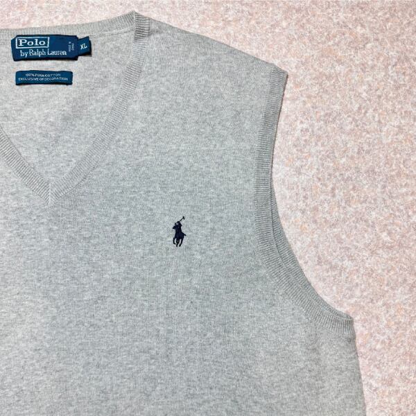 「Polo by Ralph Lauren (ポロラルフローレン)」90s 00s 10s XLサイズ ピマコットン ライトグレー ポニー刺繍 ニット ベスト [2516070] | 古着屋IDENTITY