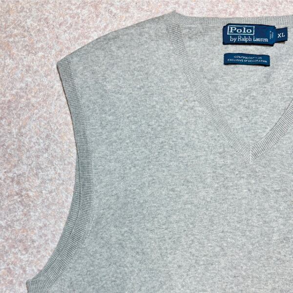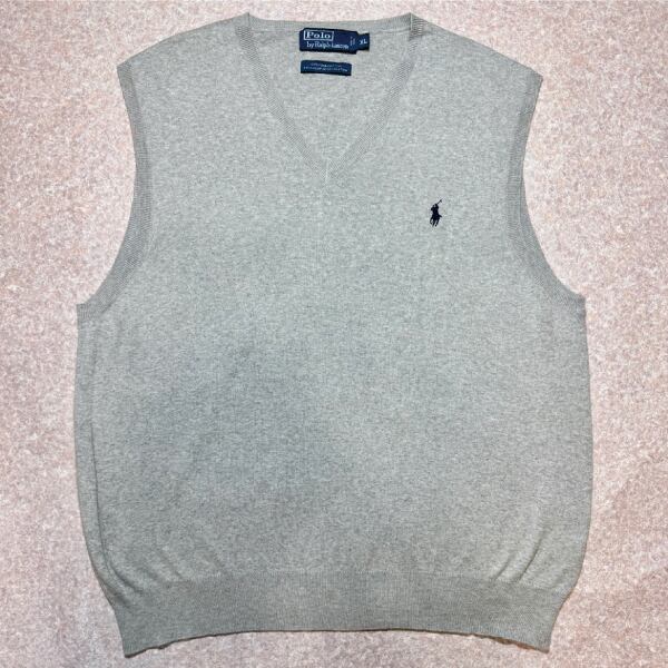 「Polo by Ralph Lauren (ポロラルフローレン)」90s 00s 10s XLサイズ ピマコットン ライトグレー ポニー刺繍 ニット ベスト [2516070]