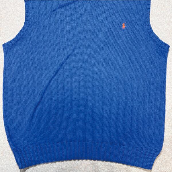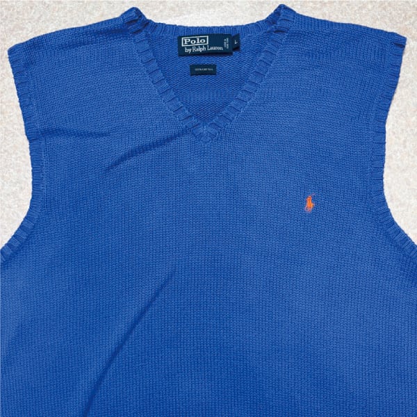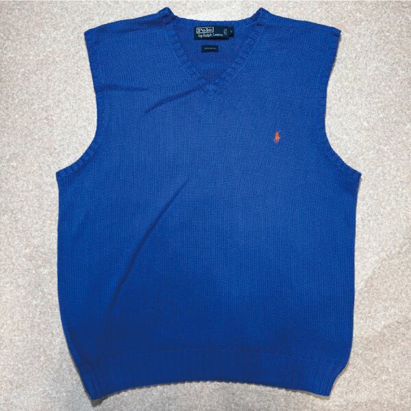 「Polo by Ralph Lauren (ポロラルフローレン)」90s 00s 10s Lサイズ コットン ロイヤルブルー ポニー刺繍 ローゲージ ニット ベスト [2516071] | 古着屋IDENTITY