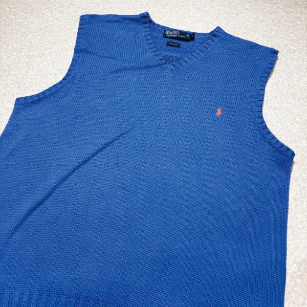 「Polo by Ralph Lauren (ポロラルフローレン)」90s 00s 10s Lサイズ コットン ロイヤルブルー ポニー刺繍 ローゲージ ニット ベスト [2516071]