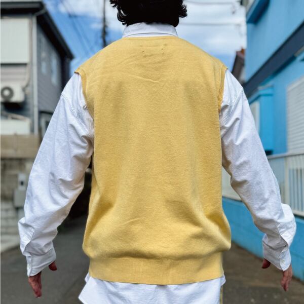 ニットベストに相性抜群な襟付きシャツはもちろん、カットソーやトレーナー、パーカーなどを合わせていただいても、様になる着こなしをお楽しみいただけます!