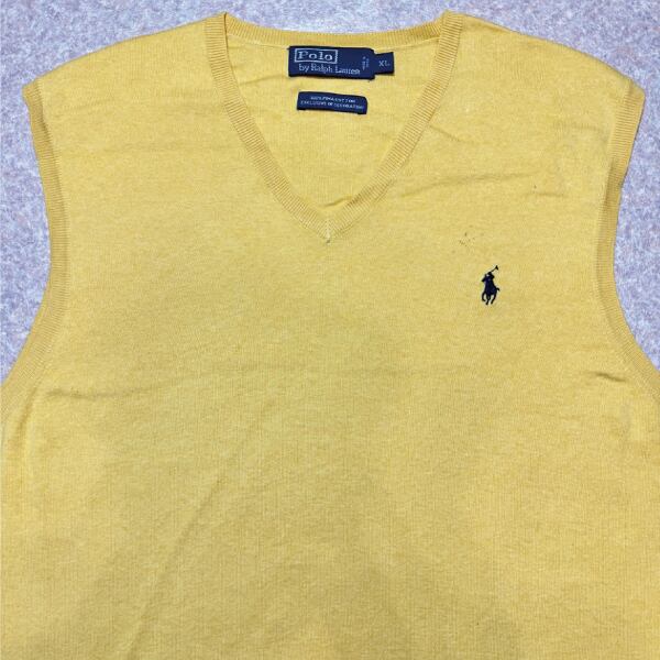 「Polo by Ralph Lauren (ポロラルフローレン)」90s 00s 10s XLサイズ ピマコットン イエロー ポニー刺繍 ニット ベスト [2516072] | 古着屋IDENTITY
