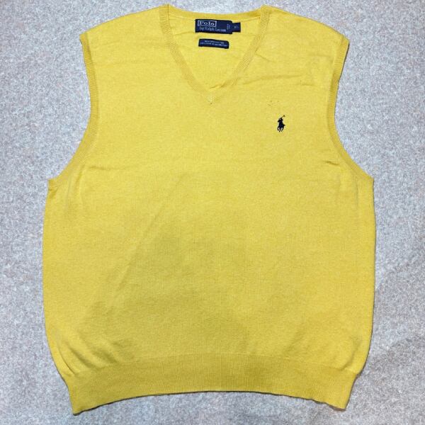 「Polo by Ralph Lauren (ポロラルフローレン)」90s 00s 10s XLサイズ ピマコットン イエロー ポニー刺繍 ニット ベスト [2516072]
