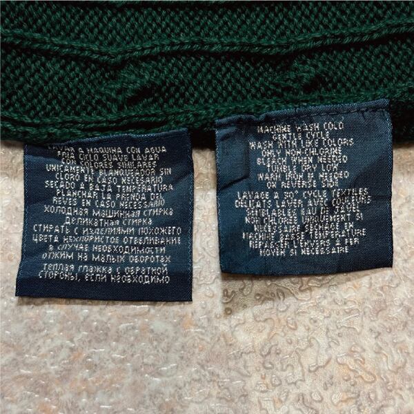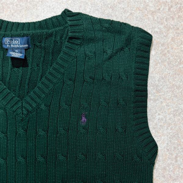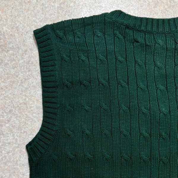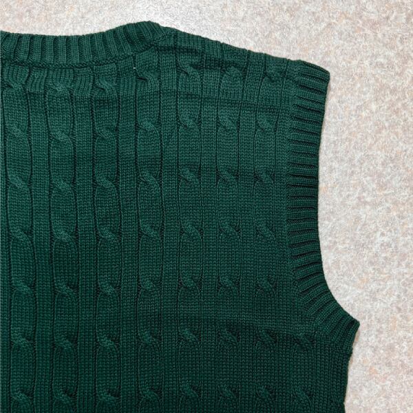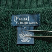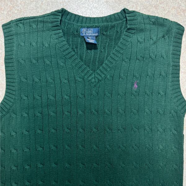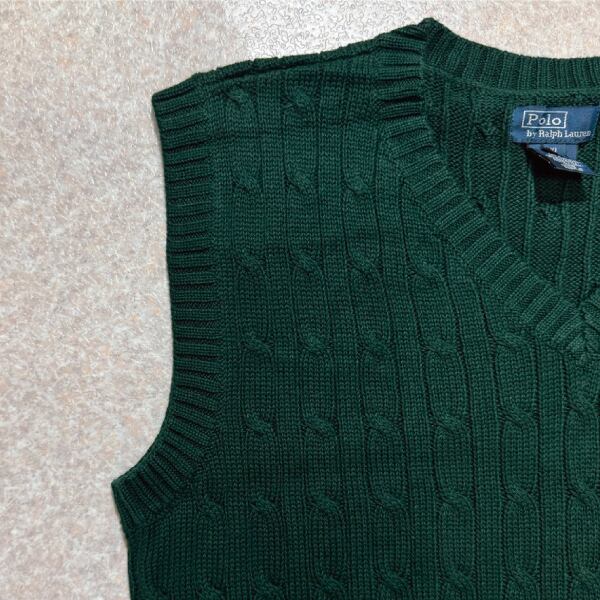 「Polo by Ralph Lauren (ポロラルフローレン)」90s 00s 10s ボーイズ XL Sサイズ相当 コットン グリーン ケーブル編み ポニー刺繍 ニット ベスト [2516077] | 古着屋IDENTITY