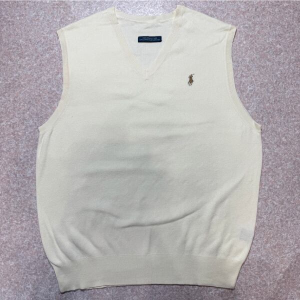 「Polo by Ralph Lauren (ポロラルフローレン)」90s 00s 10s 20s S〜Mサイズ相当 ピマコットン オフホワイト ポニー刺繍 ニット ベスト [2516078]