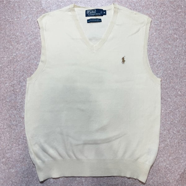 「Polo by Ralph Lauren (ポロラルフローレン)」90s 00s 10s Mサイズ ピマコットン オフホワイト ポニー刺繍 ニット ベスト [2516080] | 古着屋IDENTITY