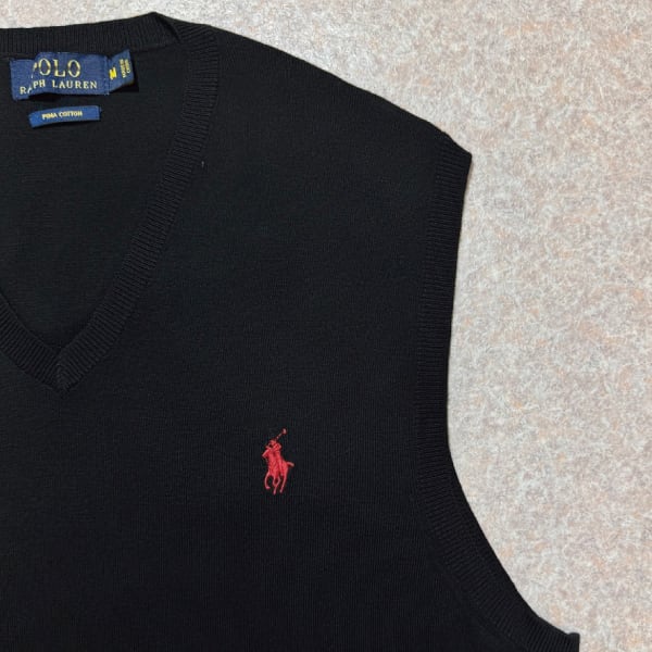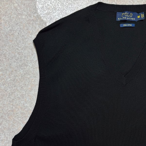 「POLO RALPH LAUREN(ポロラルフローレン)」10s 20s Mサイズ ピマコットン ブラック ポニー刺繍 ニット ベスト [2516085]