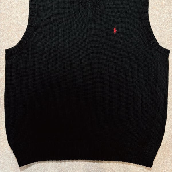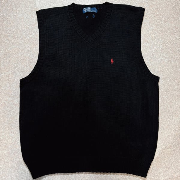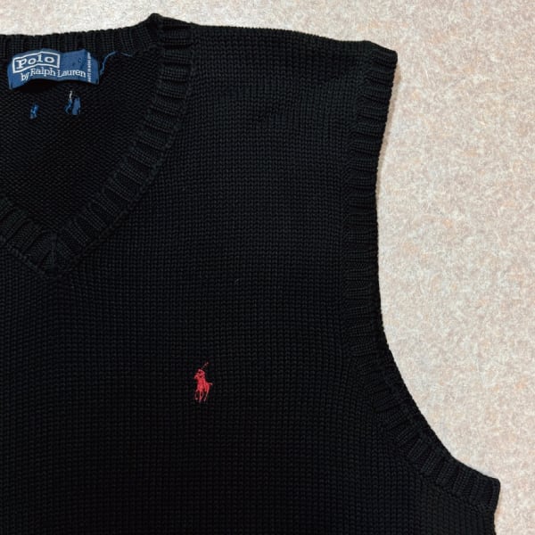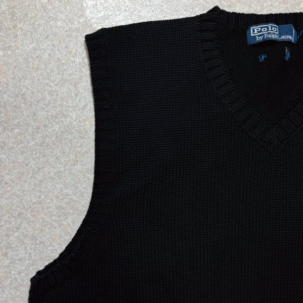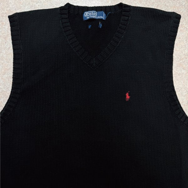 「Polo by Ralph Lauren (ポロラルフローレン)」90s 00s 10s M〜Lサイズ相当 コットン ブラック ポニー刺繍 ローゲージ ニット ベスト [2516091] | 古着屋IDENTITY