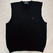「Polo by Ralph Lauren (ポロラルフローレン)」90s 00s 10s M〜Lサイズ相当 コットン ブラック ポニー刺繍 ローゲージ ニット ベスト [2516091]