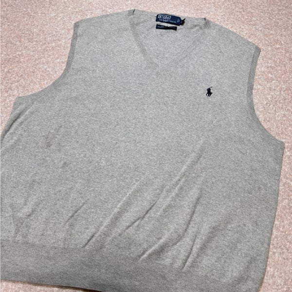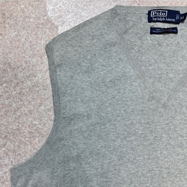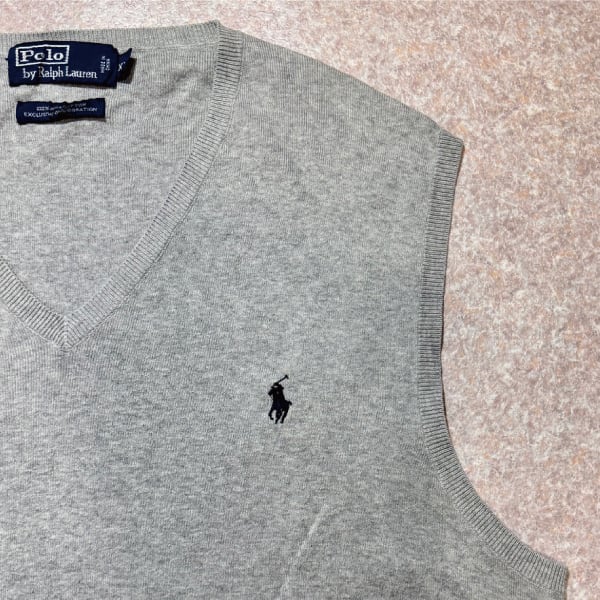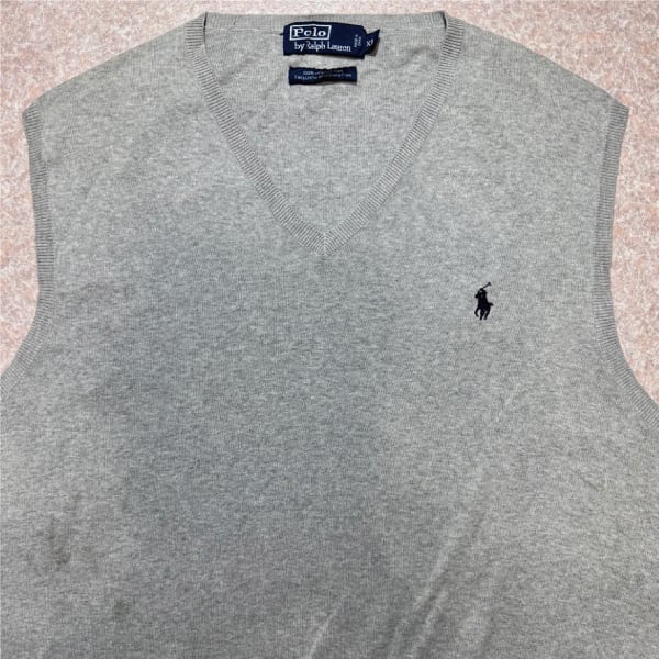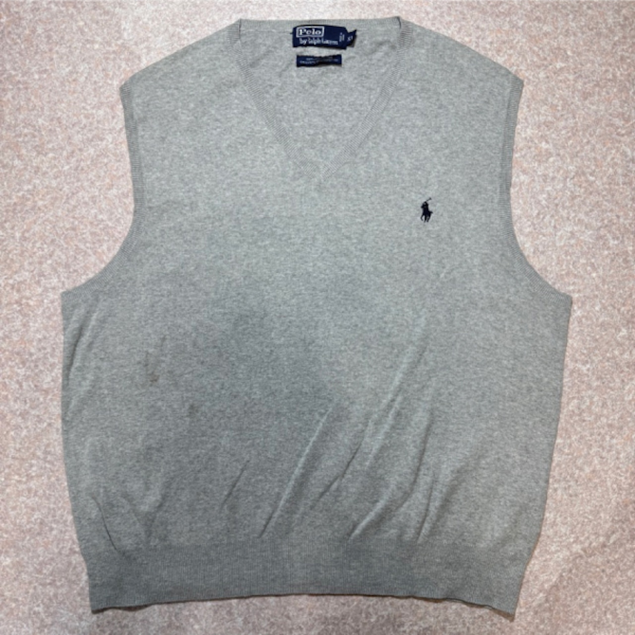 「Polo by Ralph Lauren (ポロラルフローレン)」90s 00s 10s XLサイズ ピマコットン ライトグレー ポニー刺繍 ニット ベスト [2516092] | 古着屋IDENTITY