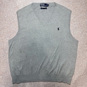 「Polo by Ralph Lauren (ポロラルフローレン)」90s 00s 10s XLサイズ ピマコットン ライトグレー ポニー刺繍 ニット ベスト [2516092]