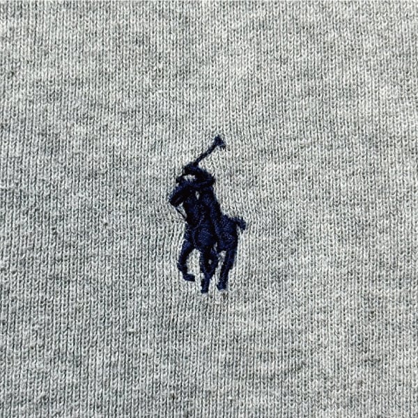 無彩色の渋めなライトグレーのボディに、上品に際立つネイビーのポニー刺繍がちょうどいいアクセントになっています!