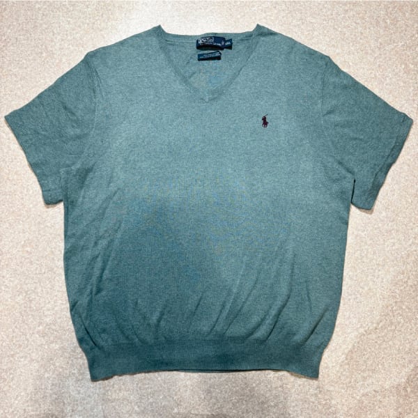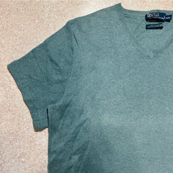 「Polo by Ralph Lauren (ポロラルフローレン)」90s 00s 10s XXLサイズ ピマコットン ダスティブルー ポニー刺繍 ニット Tシャツ [2511001] | 古着屋IDENTITY