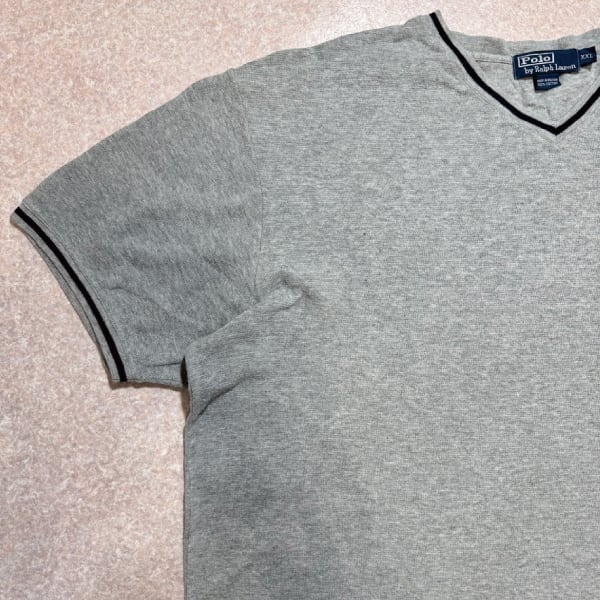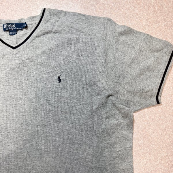 「Polo by Ralph Lauren (ポロラルフローレン)」90s 00s 10s XXLサイズ コットン ライトグレー ポニー刺繍 ニット Tシャツ [2511002] | 古着屋IDENTITY