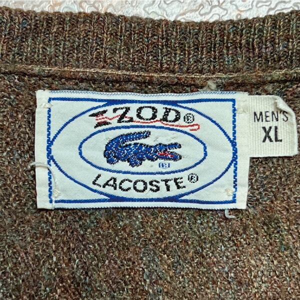 「LACOSTE(ラコステ)」IZOD アイゾッド 70s 80s 糸巻きタグ 青ワニ XLサイズ ブラウン アクリルニット セーター [2211019]