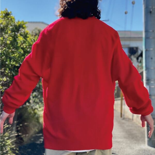 「LACOSTE(ラコステ)」IZOD アイゾッド 80s 90s USA製 Lサイズ レッド アクリルニット カーディガン [2211024]