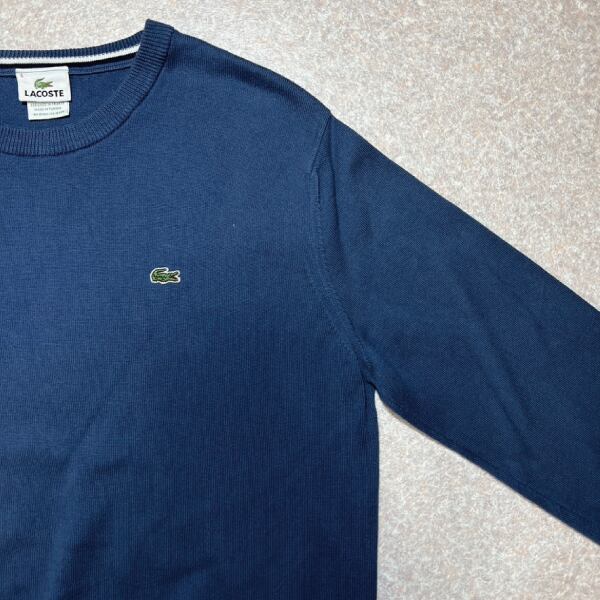 「LACOSTE(ラコステ)」90s 5サイズ ネイビーブルー コットン クルーネック ニット セーター [2211039]