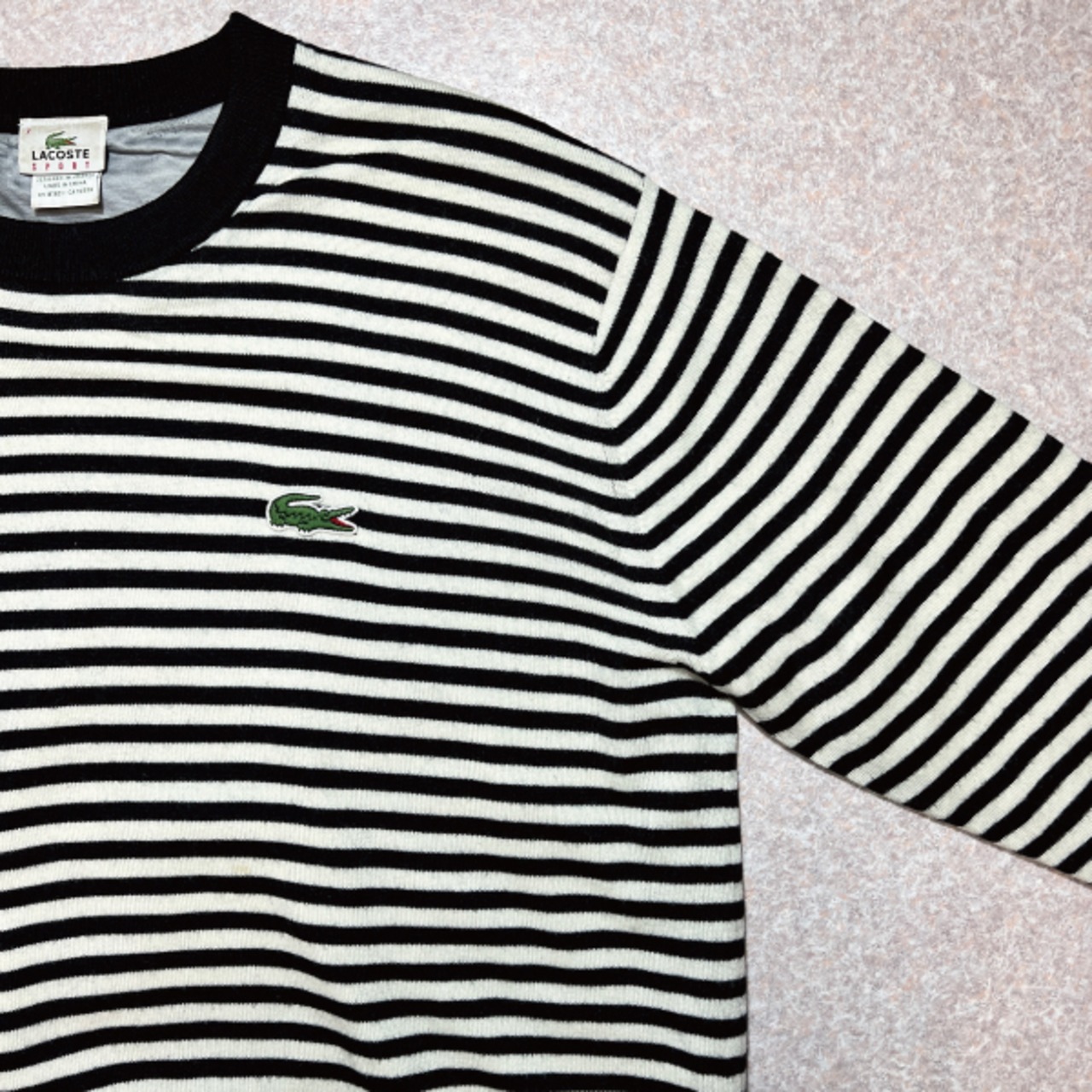 「LACOSTE(ラコステ)」SPORT スポーツ 90s 7サイズ ボーダー ウールアクリル 裏地付き クルーネック ヤッケ ニット セーター [2211045]
