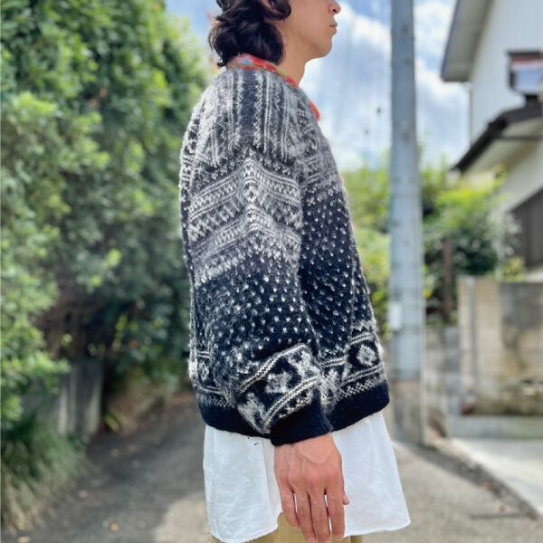 そんなラインから古着ならではの良さを活かしつつ、意外と古着では探すことができないモヘア風の起毛加工を施した「モヘア風起毛加工ノルウェーニット4」が入荷しました!