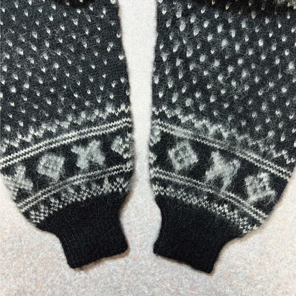 寒冷地のため二重に編むことによって肉厚にしており、「ルース・コスタ」と呼ばれる水玉風の点描柄や雪の結晶、トナカイなどの編み柄に特徴があります!