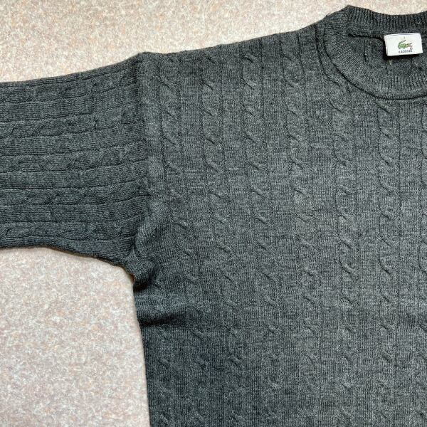 「LACOSTE(ラコステ)」90s 00s 7サイズ グレー ウール ウールマーク ケーブル クルーネック ニット セーター [2311026]
