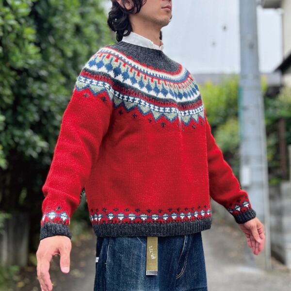 ノルディックニットで赤色は意外と珍しいかなと思います!